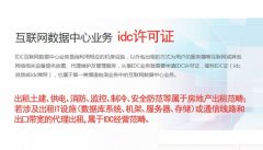 idc證辦理條件介紹:1、經(jīng)營(yíng)者為依法設立獨立法人公司2、全網(wǎng)idc經(jīng)營(yíng)許可證需提供至少給3個(gè)人交有一個(gè)月的社保3、跨地區經(jīng)營(yíng)的注冊資本最低認繳限額為1000萬(wàn)元人民幣5、全網(wǎng)idc許可...
